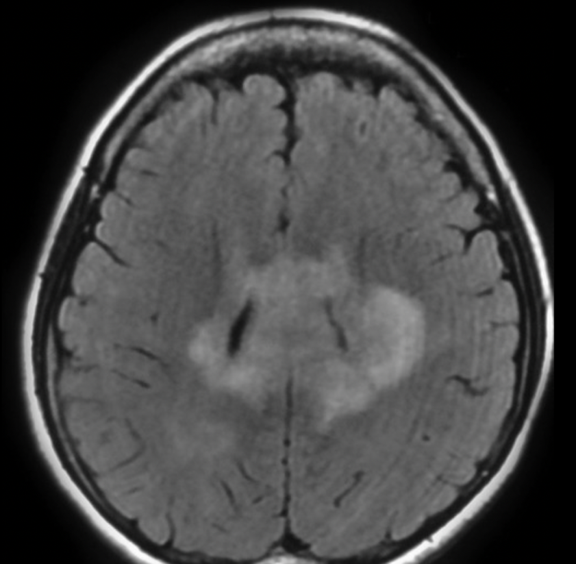 Uomo di 55 anni con cefalea e deficit cognitivo lieve. RM encefalo mostra una lesione periventricolare iperintensa in FLAIR e bilaterale. Viene iniziata terapia steroidea empirica → dopo 10 giorni la lesione si riduce drasticamente.